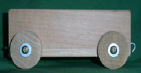 Die Zugkomposition ist aus Buchenholz gefertigt. Ein Wagen misst 160 x 85 x ca. 95 mm. Der Zug kann beliebig zusammengestellt werden.